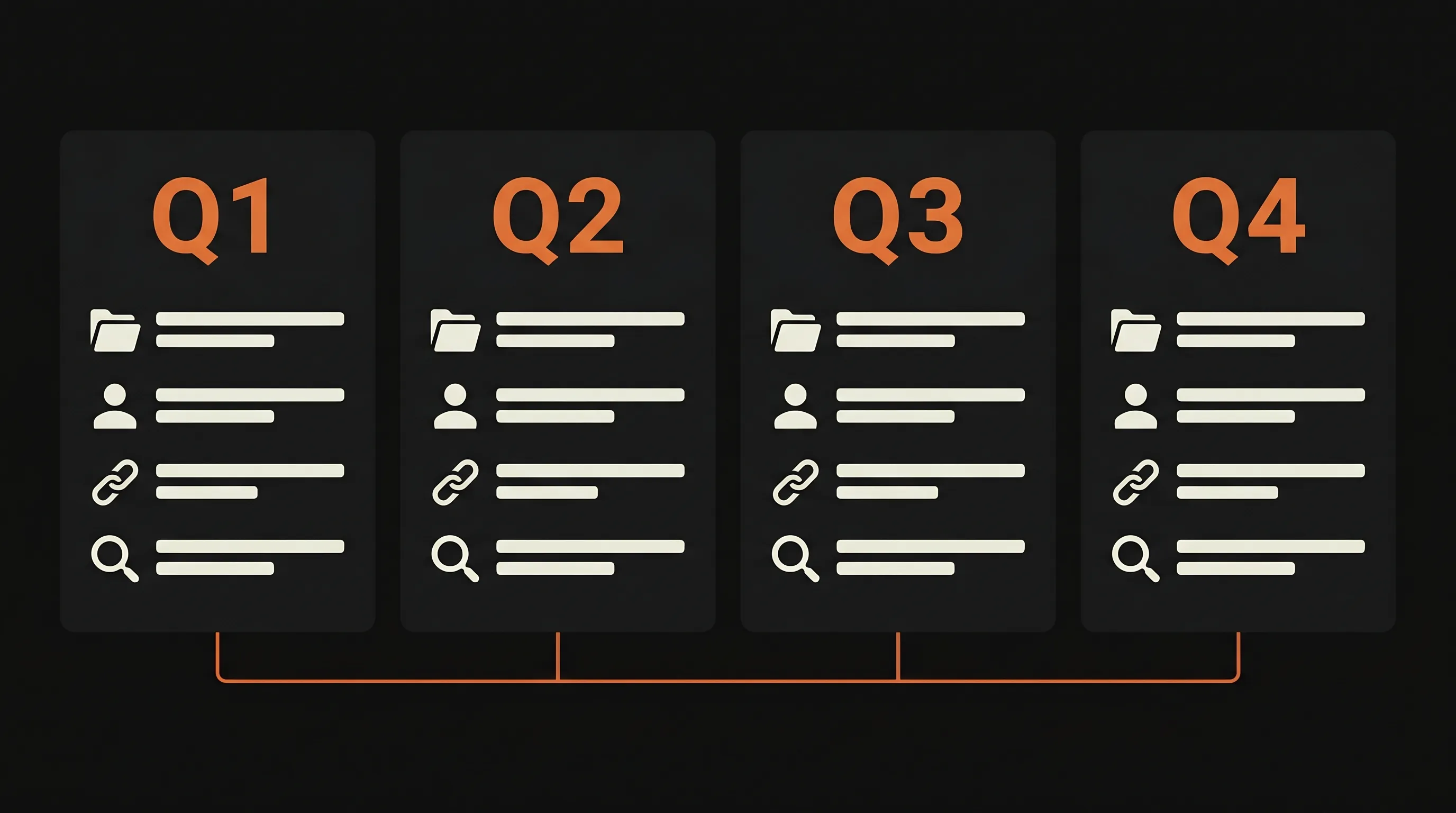 Put a recurring calendar event on someone's calendar — a real human, not a team — for the first week of each quarter. The agenda: